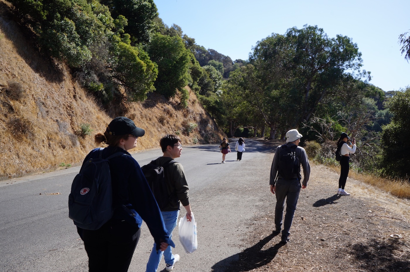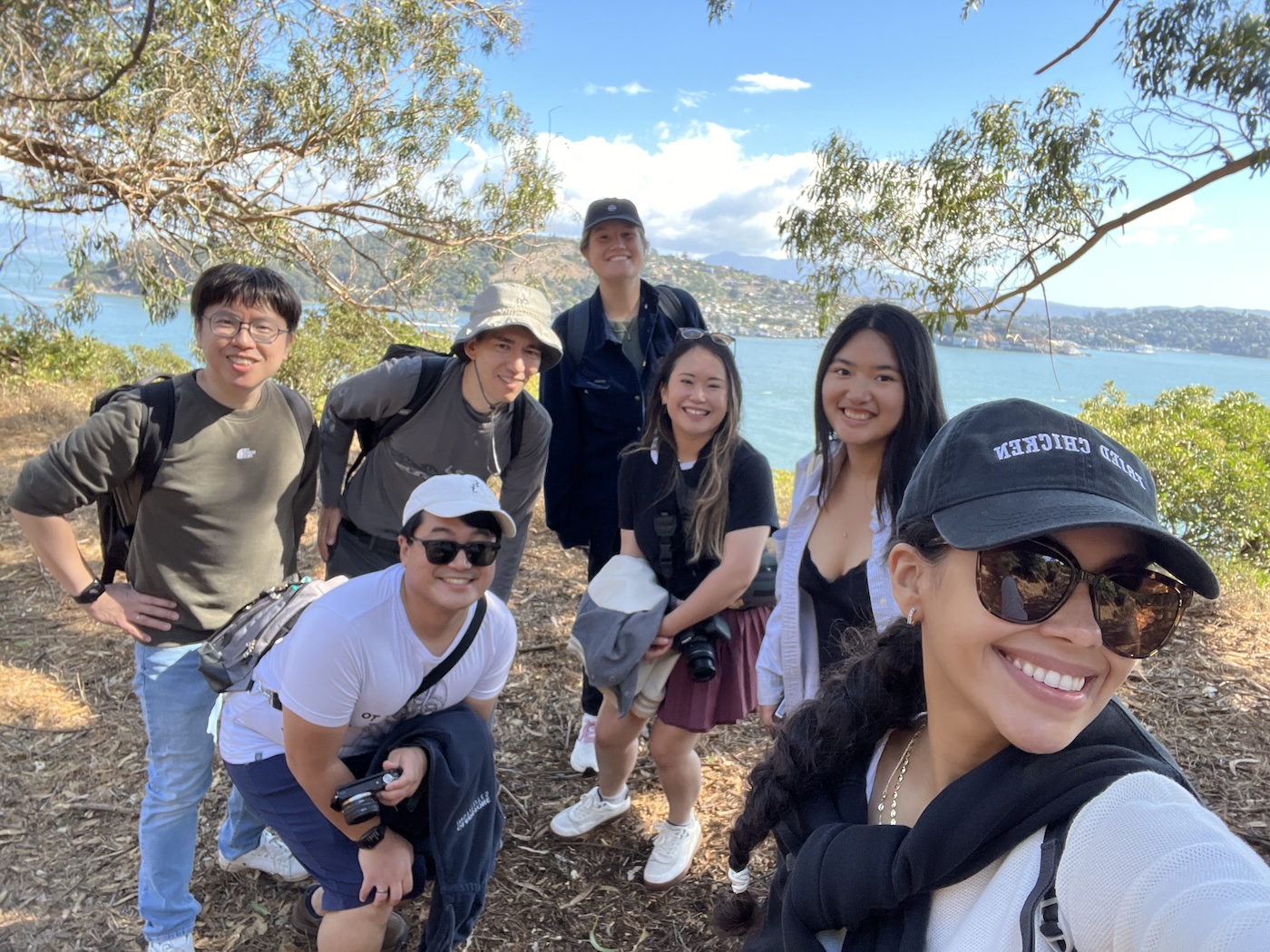 Jonathan Meng and Wole Alese, along with fellow EMBARK scholars, meeting with Robert and Linda Mahley, Deepak Srivastava, and former Gladstone Investigator David Phillips, a lead donor of the EMBARK program. 2023